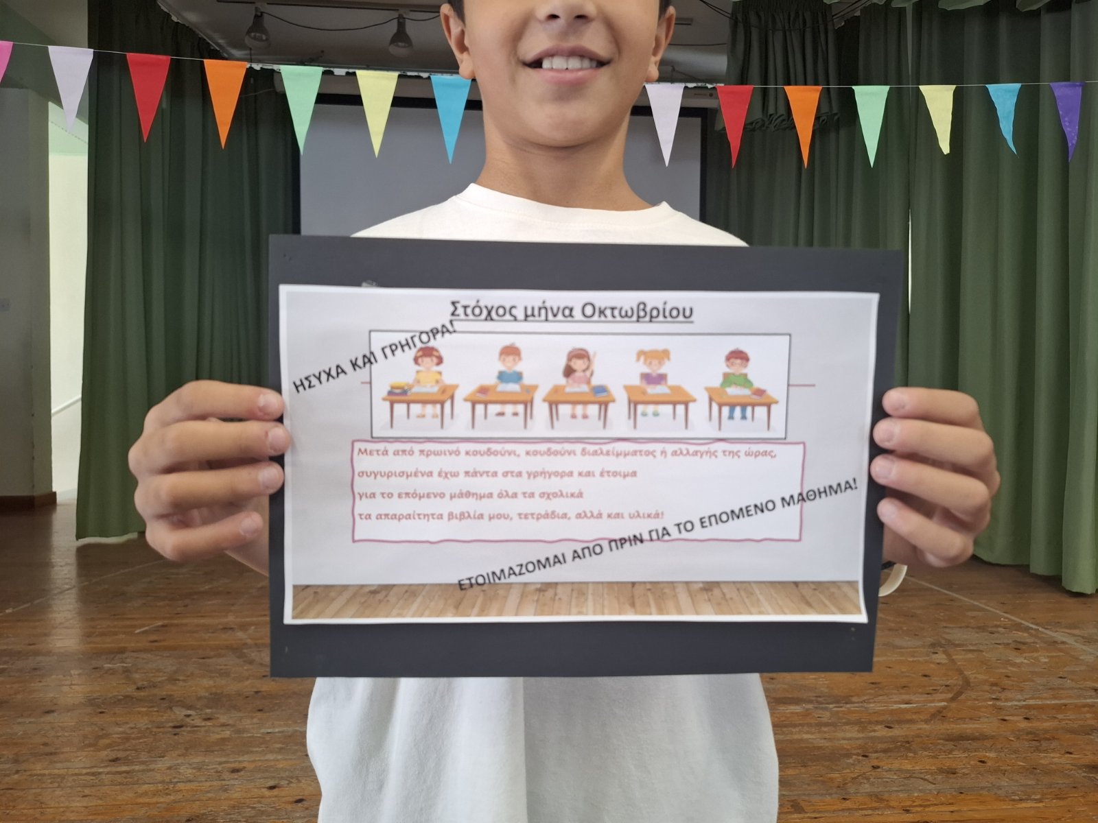 27/10/2025: Εορτασμός 28ης Οκτωβρίου στο θέατρο μας. Συμμετοχή Ε' και Στ' τάξης. Παρέλαση Κεντρικού Μαθητικού Συμβουλίου και Συμβουλίων τάξεων.